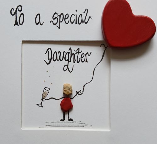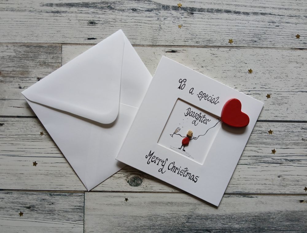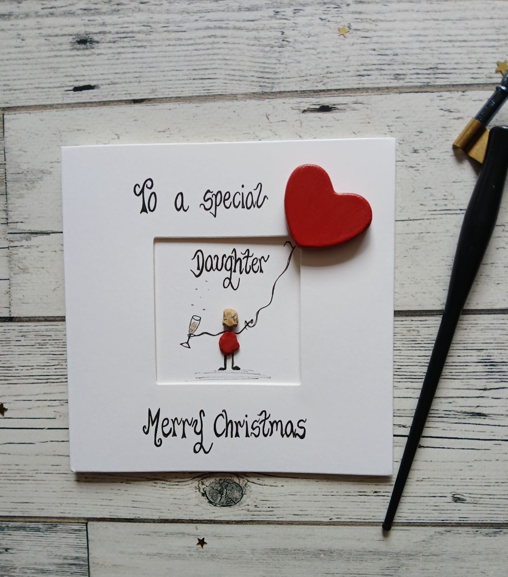 Send your daughter a special card this Christmas time, with our handmade pebble art card.