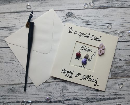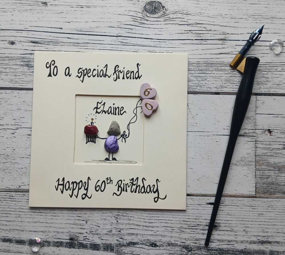 Send your friend your wishes for her big milestone birthday with our handmade pebble art card. It’s the perfect card to gift to your special friend.