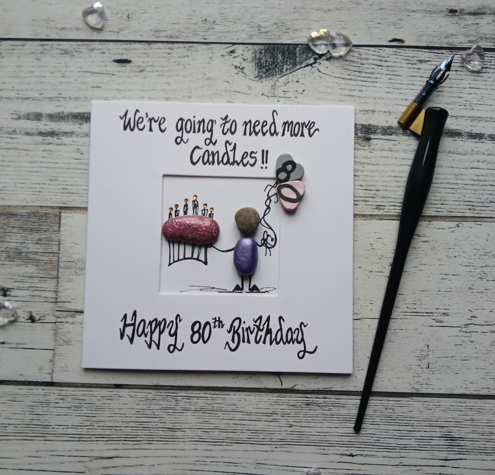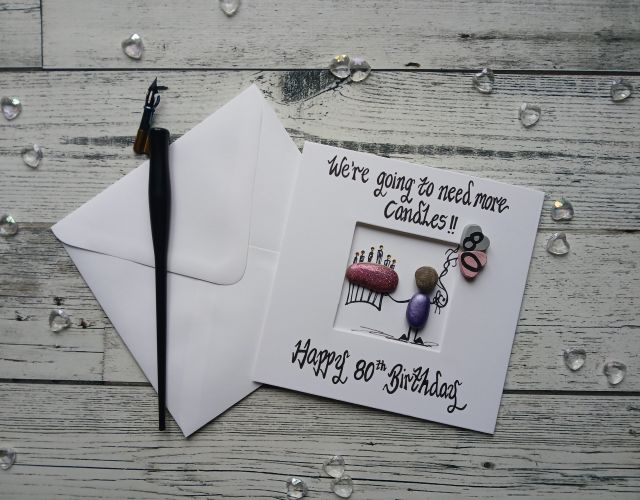 A fun pebble art 80th birthday card to celebrate a milestone birthday.